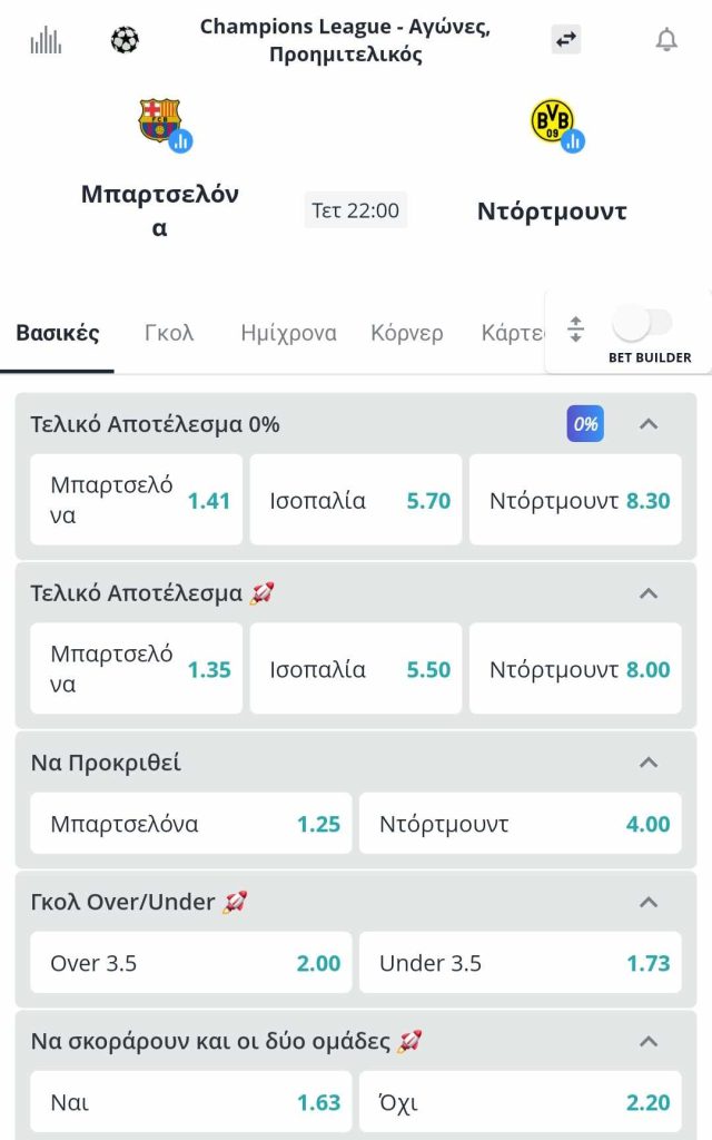 Λαμπερή κόντρα στα προημιτελικά του Champions League το Μπαρτσελόνα – Ντόρτμουντ. Εντός της Novibet Reviews σελίδας μας διακρίνει κανείς ότι η Νοβιμπετ είναι πλέον από τις διαδεδομένες ιστοσελίδες στην Ελλάδα. Με μια ματιά στις στοιχηματικές εταιρείες προκύπτουν για τα σημερινά παιχνίδια πολύ καλές προσφορές, αλλά και αποδόσεις που ξεχωρίζουν. Στην εφαρμογή Novibet, θα παρατηρήσουμε ότι η εταιρεία προσφέρει ήδη πλήθος ειδικών στοιχημάτων, ελκυστικό Bet Builder, αλλά και το 0% Γκανιότα σε επιλεγμένους αγώνες ποδοσφαίρου και όχι μόνο.
