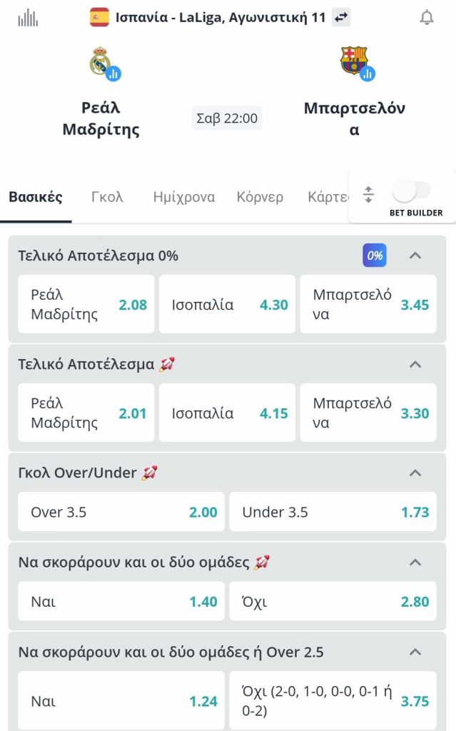 Το πρώτο κλάσικο της σεζόν είναι γεγονός στην La Liga ανάμεσα στην Ρεάλ Μαδρίτης και την Μπαρτσελόνα. Εντός της Novibet Reviews σελίδας μας διακρίνει κανείς ότι η Νοβιμπετ είναι πλέον από τις διαδεδομένες ιστοσελίδες στην Ελλάδα. Με μια ματιά στις στοιχηματικές εταιρείες προκύπτουν για τα σημερινά παιχνίδια πολύ καλές προσφορές, αλλά και αποδόσεις που ξεχωρίζουν. Στην εφαρμογή Novibet, θα παρατηρήσουμε ότι η εταιρεία προσφέρει ήδη πλήθος ειδικών στοιχημάτων, ελκυστικό Bet Builder, αλλά και το 0% Γκανιότα σε επιλεγμένους αγώνες ποδοσφαίρου και όχι μόνο.